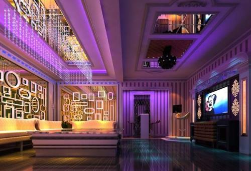 除以上四点之外,设计师们还需要考虑客人座位与电视屏幕的距离,建议不得小于3-4米。总之,酒吧式KTV设计在空间考量方面应具有封闭、隐密、温馨的特征。酒吧里设有小型两人KTV或四人KTV包厢,以及能容纳十多人的大型KTV包厢。